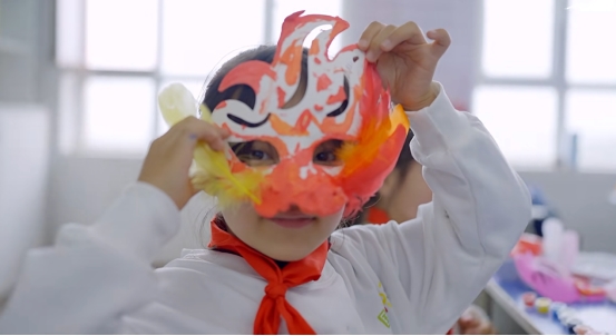 “《千里江山图》里青山的颜色,其实来自于矿物颜料哦!”甘肃临夏州积石山县前岭小学的课堂上,老师的话音刚落,孩子们便迫不及待地围上来,指尖轻轻蹭过石青、石绿颜料。这堂从传世名画延伸的美术课,不仅教孩子们调色施彩,更让他们触摸到传统文化中“多一分则浊,少一分则薄”的细腻美感。前岭小学的另一节美术课上,老师拿着三星堆面具模型,和孩子们开起“面具故事会”。从面具的起源,到不同文化中面具的符号意义,孩子们循着历史脉络展开想象,把对传统文化的理解画进自己设计的面具里。