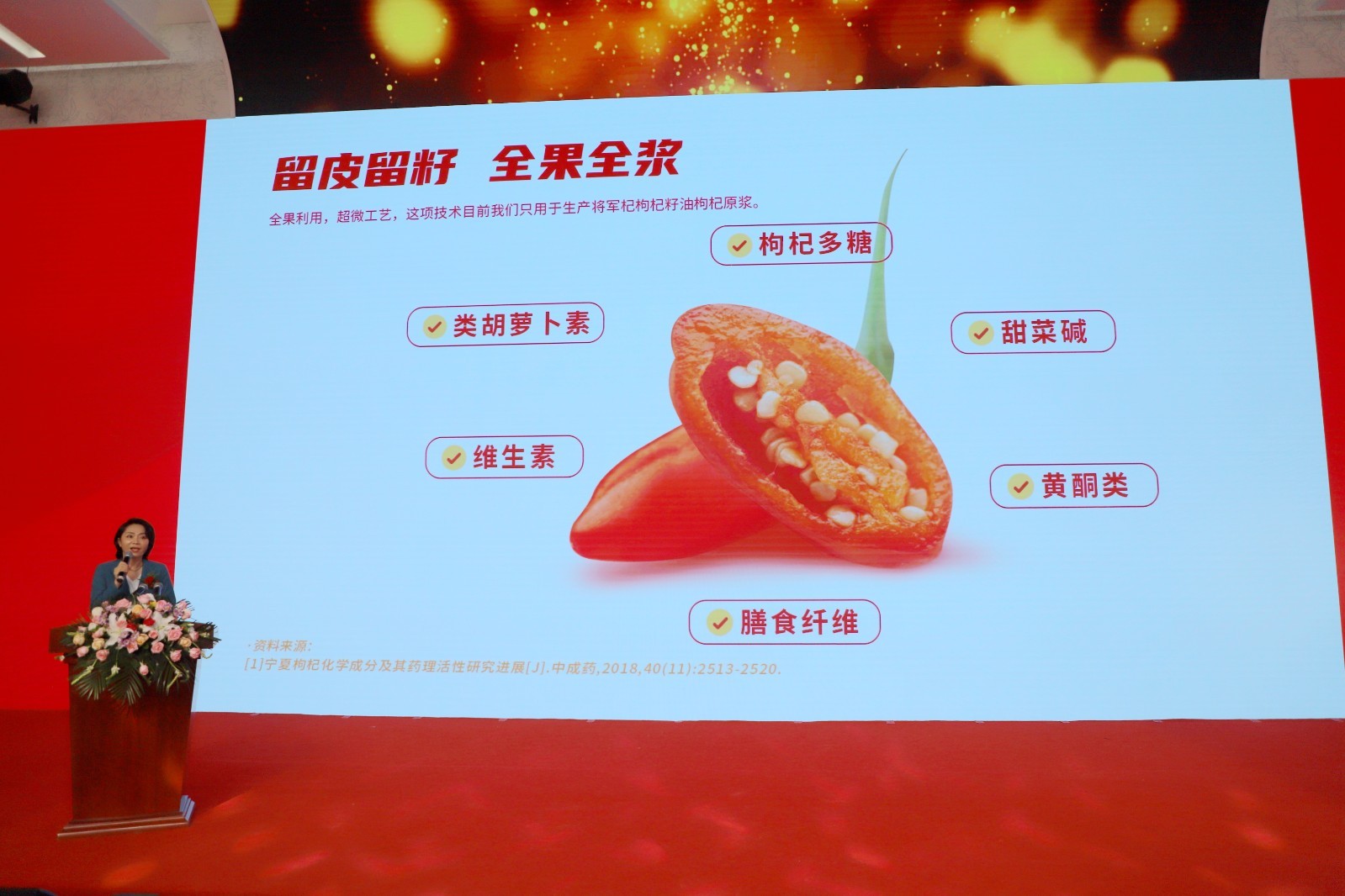 本次活动中,基于对健康营养均衡理念的科学研究和对枸杞成分及配方的系统钻研,宁夏沃福百瑞枸杞产业股份有限公司推出三款全新枸杞产品。分别为:慧眼明康枸杞籽油叶黄素酯凝胶糖果、沙棘油沙棘原浆、将军杞枸杞籽油枸杞原浆。三款产品均为便携的养生好物,精美的包装、独特的口感,丰富的营养获得莅临嘉宾们的一致好评,相信沃福百瑞本次推出的新品,将再次开创健康生活新风潮。