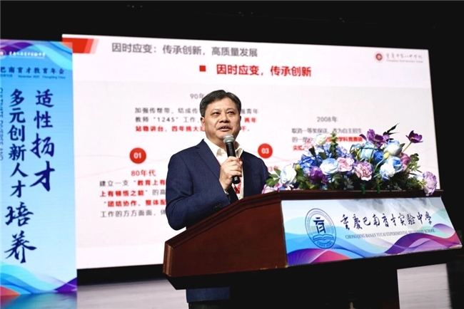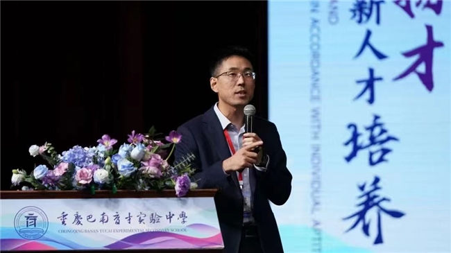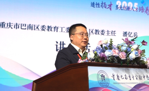 中共重庆市巴南区委教育工委书记、区教委主任潘亿兵在主论坛开幕式上致辞。他指出,当前教育正经历深刻变革,破局关键在于深化“贯通培养”与“个性化教育”的探索与实践。他肯定了重庆巴南育才实验中学在“适性扬才”方面的实践,如走班制、导师制和小班化教学,并强调要着力构建学段无缝衔接、课程有机整合的育人体系,积极利用信息技术赋能个性化学习,为学生的终身发展奠定坚实基础。