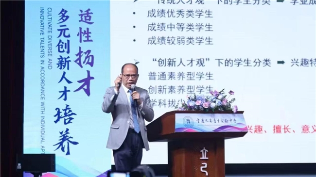 本次年会突破传统研讨模式,构建了多元主体共治共享的对话生态。一个主论坛与八大分论坛的73场专题报告,全面展示了我校“适性扬才”的育人探索成果。高校专家与一线教师协同探讨政策落地路径,家长代表与学生代表同台分享实践智慧,彰显了“多元共育、协同赋能”的现代教育治理理念。