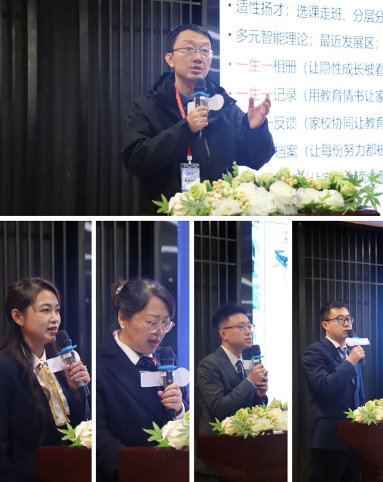学生发展与指导中心主任张应兰老师分享学生发展指导的校本实践,刘李惠子老师详解心理辅导技术的应用场景,王舟红老师探讨班级管理与生涯教育的融合策略,于浩老师通过活动案例展示实践育人成效。