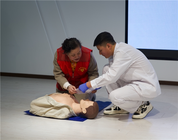 一位年过六旬的阿姨也全程参与了练习,动作标准得让年轻人都自愧不如。她说:“我有高血压,说不定哪天就需要别人救我,也说不定哪天我能救别人。多学一项技能,就多一份希望。”