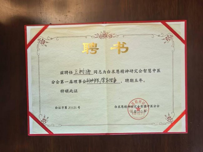 王树海的公益健康实践能够取得显著成效,离不开他多元的专业背景和丰富的专业资质的支撑。如今的他,不仅是一名健康公益践行者,更是高级健康管理师、中医高级健康管理师,被聘为白求恩精神研究会智慧中医分会副秘书长、常务理事,中国亚洲非遗工作委员会副主席,幸福港健康养生研究院院长,中国医药教育协会军地医学人才教育中心专家委员及客座教授,中国生命关怀协会疾病预防与康复专业委员会常务理事,中国管理科学研究院商学院客座教授、专家委员,并荣获“大国医者”的荣誉称号。这些身份和资质,不仅是对他专业能力的认可,更是他开展公益健康实践的底气。
