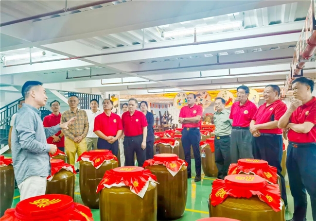 会议开始前,与会人员实地参观了惠州市红色文化促进会理事单位——惠州市来发实业有限公司,听取了董事长朱来发关于企业发展历程与经营理念的介绍。据悉,来发集团自2005年成立以来,已发展成为集研发、生产、销售、配送于一体的综合性企业,业务涵盖食品制造、餐饮服务、国内外贸易、酒旅文化及名酒销售等多个领域。集团自创酱酒品牌“神秘九八七”,秉持“来者皆是客,发予天下人”的理念,赢得社会广泛认可。朱来发董事长表示,企业将积极参与惠州红色文化事业建设,为文化传承贡献企业力量。