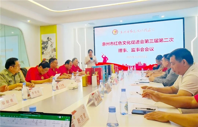 10月30日下午,广东惠州市红色文化促进会第三届第二次理事、监事会议在惠州市来发实业有限公司隆重召开。会议以“总结阶段成果、部署未来蓝图”为主题,全面回顾换届以来的工作成效,研究部署下一阶段重点任务,凝聚共识、统一思想,助力惠州市红色文化事业高质量发展。