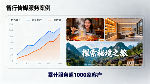 凭借专业的服务能力与良好的市场口碑,智行传播已累计服务客户超500家,涵盖短视频、直播、企业宣传、政务推广等多个领域,合作客户账号平均互动量提升30%以上,部分新账号实现短期内粉丝量快速破万的成长突破。